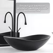 Our ceramic wash basin not only serves its practical purpose but also adds a statement piece to your bathroom decor. The sleek black basin with a modern oval shape exudes elegance and style, making it a focal point of your space.