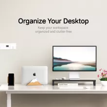 - Premium Materials: Made with a sturdy aluminum alloy frame and a stylish wooden base, this stand is both durable and visually appealing, adding a touch of sophistication to any desk.