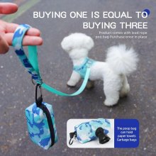 Our harness is made from high-quality mesh cloth, providing a breathable and comfortable experience for your pet, ensuring they stay cool and comfortable even during extended walks. The simple buckle design allows for easy traction, making it hassle-free for you to secure your pet and head out for a walk. The set also includes a matching leash and a convenient poop bag dispenser, ensuring you have everything you need for a successful and enjoyable outing.