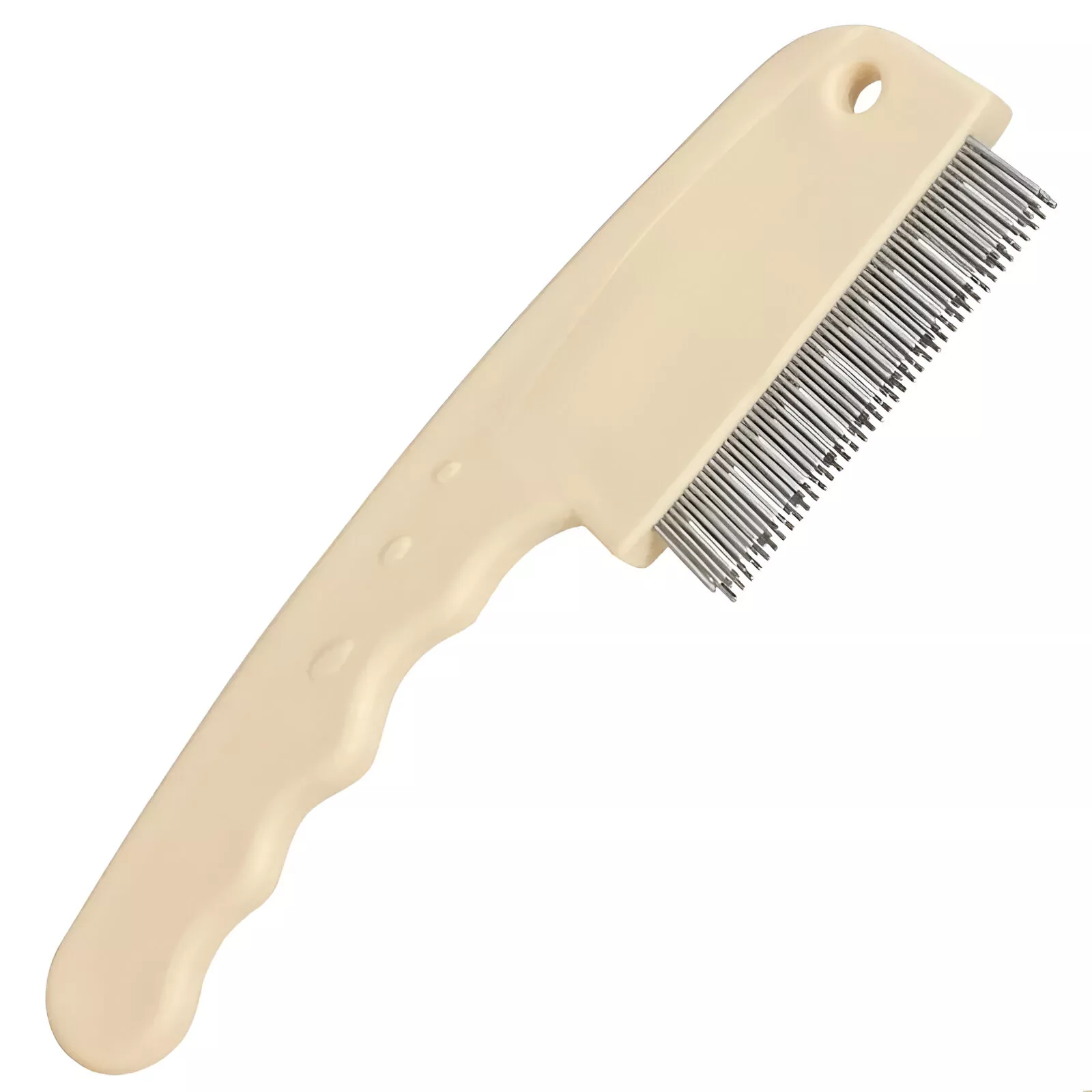 - Three-sided stainless-steel comb teeth for efficient grooming