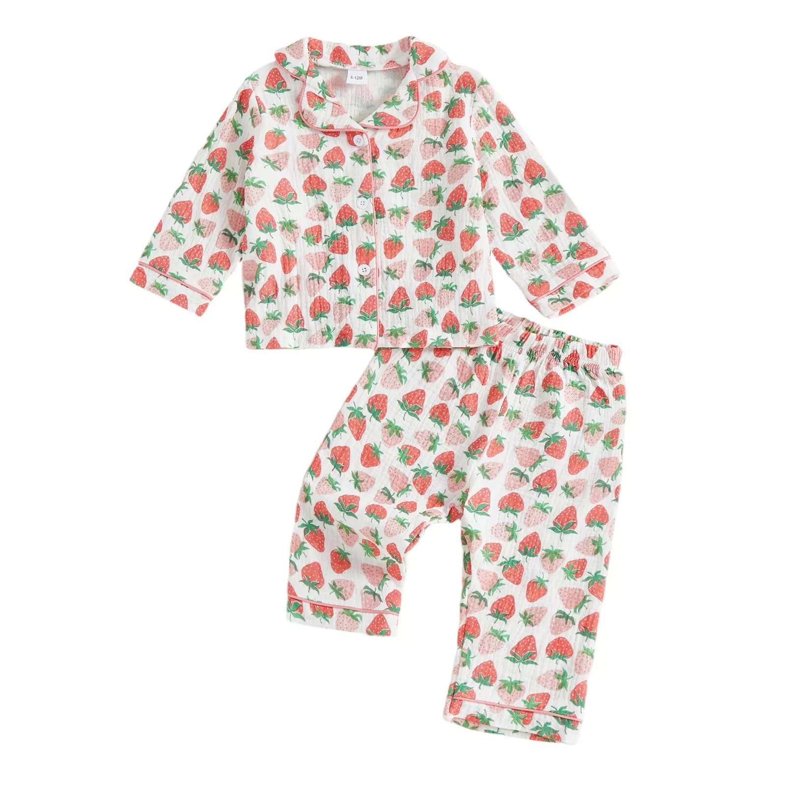 Wrap your little one in comfort and charm with this adorable Pajama Set for toddler girls. Designed for cozy nights and playful mornings, this two-piece sleepwear set features a button-up long sleeve top with a sweet lapel collar and a matching pair of soft pants. The delightful bow and strawberry prints bring a playful touch that your child will absolutely love. Whether it’s bedtime, lounging at home, or snuggling during storytime, this pajama set keeps your girl warm, comfy, and irresistibly cute.