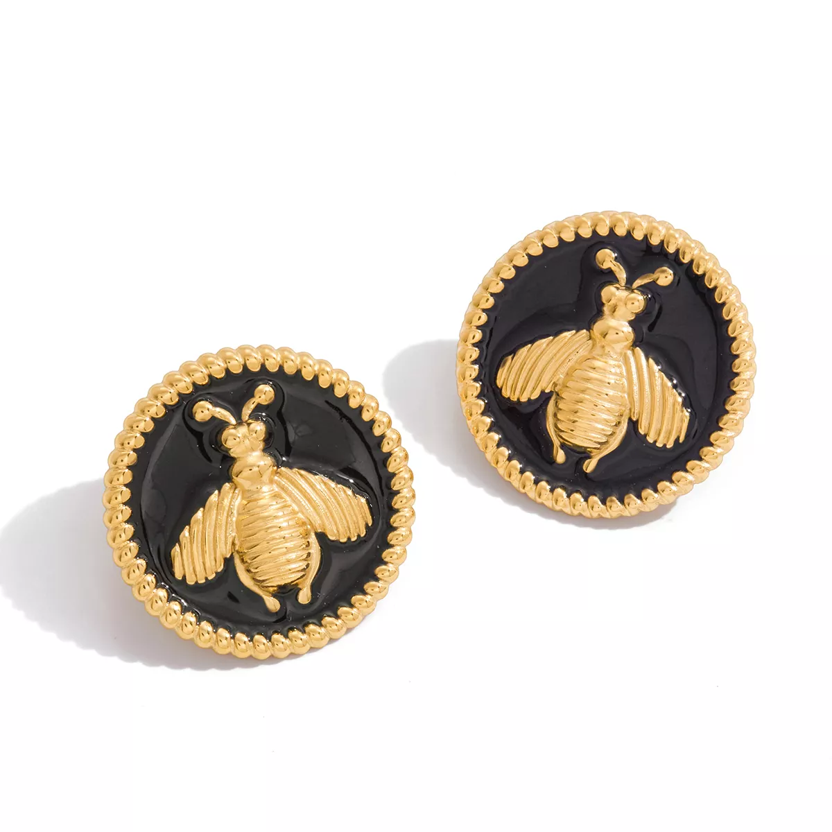 Crafted from high-quality stainless steel with durable 18K gold PVD plating, these earrings are made to last. The metal is waterproof, fade-resistant, and gentle on the skin, making it ideal for everyday wear. The geometric round design paired with the charming bee detail brings a unique flair, while the secure push-back closure ensures a comfortable fit all day long.