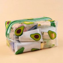 What sets our cosmetic bag apart is its unique blend of practicality and trendiness. The transparent design not only adds to its stylish appeal but also offers the convenience of seeing your products at a glance. The adorable strawberry flower print is sure to catch eyes and elevate your style quotient.