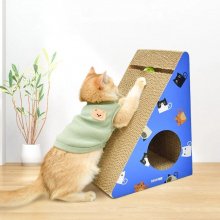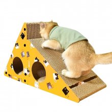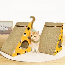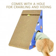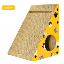 Crafted from high-quality, abrasion-resistant corrugated paper, this scratcher promises durability and long-term use. Its unique triangular shape allows for easy wall attachment, saving valuable floor space in your home. The scratcher is enhanced with holes and a bell, catering to your cat’s natural instincts for scratching, climbing, playing, and resting. In striking blue and yellow colors, it’s not just a toy, but a stylish addition to any room.