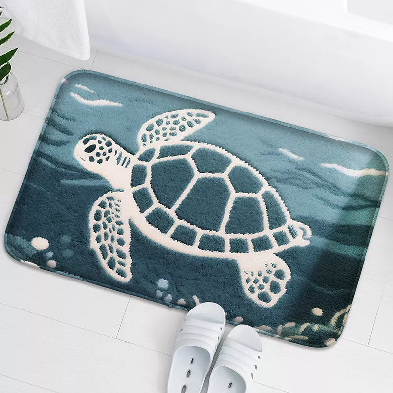 Turtle Non-Slip Bathroom Floor Mat – Absorbent Soft Decorative Rug