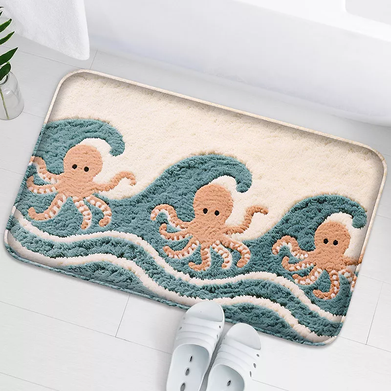 This turtle floor mat stands out with its playful printed design and super-soft texture. While most bathroom mats focus only on function, this one adds a decorative element that brightens up your space. The eco-friendly materials and machine-made finish ensure long-lasting quality without harsh chemicals.