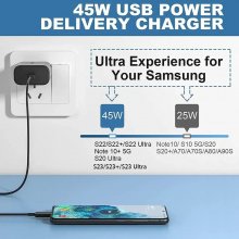 Introducing our Ultra-Fast 45W USB-C Charger Kit, your ultimate power partner for Samsung Galaxy S22, S23 Ultra, and a wide range of other compatible devices. This state-of-the-art charger kit is designed to deliver lightning-fast charging speeds, surpassing conventional chargers with ease. Imagine going from zero to 50% battery in just 20 minutes — less time tethered to an outlet means more time for you to do what you love.