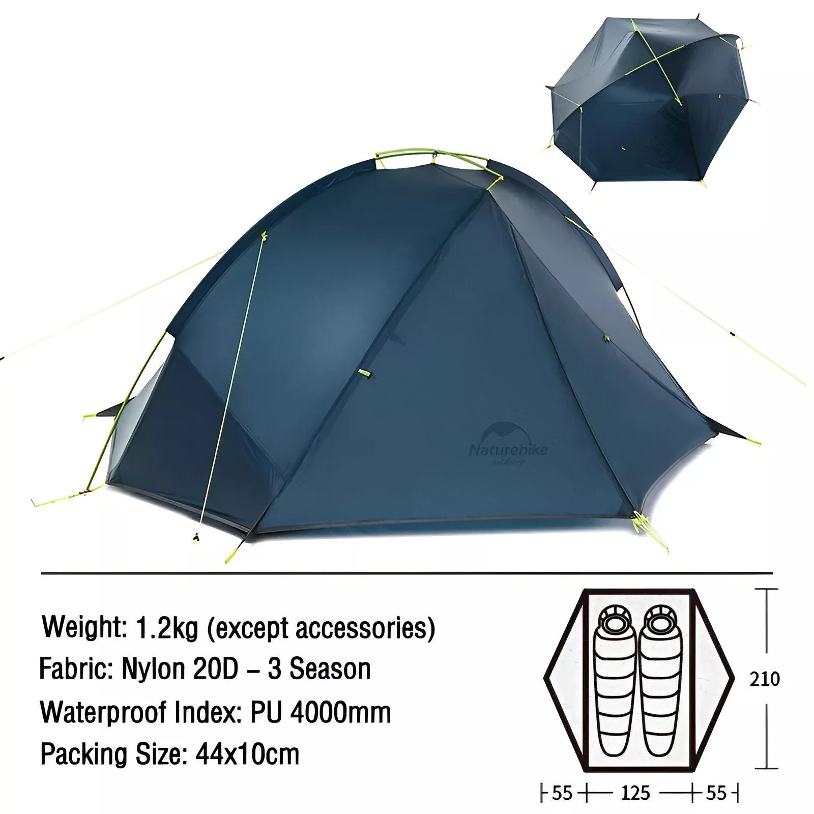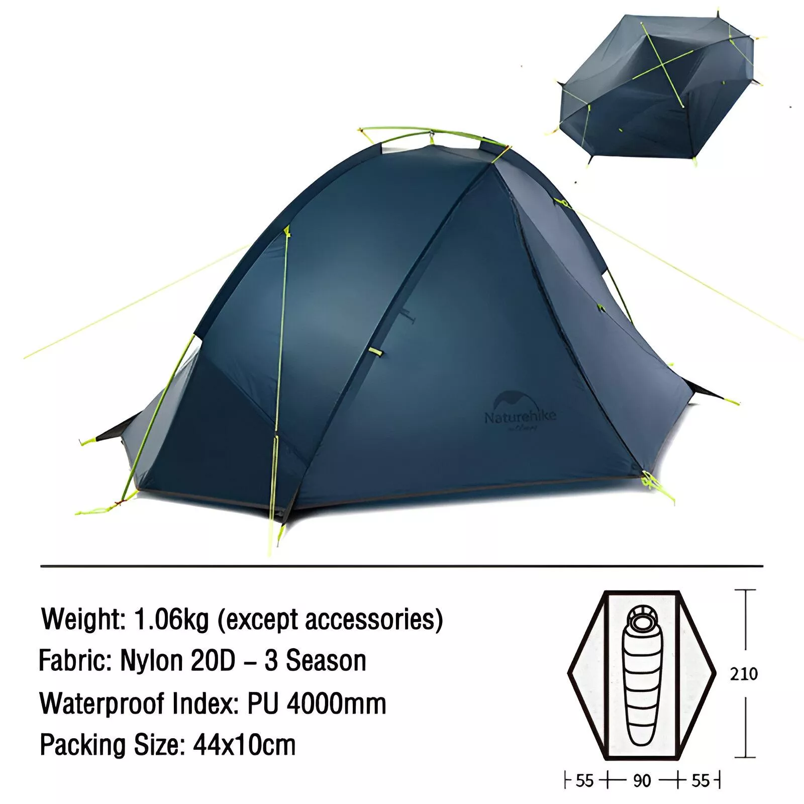 Crafted from high-quality 20D nylon and supported by strong aluminum alloy poles, this tent provides excellent stability while staying incredibly light. The double-layer design offers enhanced insulation and weather protection, while the high waterproof index of over 3000 mm ensures you stay dry even during heavy rain. With a smart, compact structure and a simple setup, you can pitch it quickly whenever you need shelter.