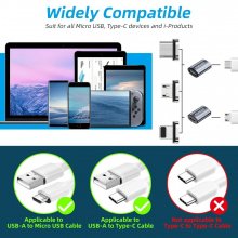 The core features of our magnetic cable tips include versatility and ease of use. With a 2.4A maximum current, your device benefits from speedy charging. Connector A is a Type-C end, while Connector B offers both Type-C and Micro USB options, ensuring compatibility with a wide range of phones and tablets. Please note that the USB C adapter is specifically designed for A-C cables and is not suitable for C-C cables or laptop charging.