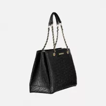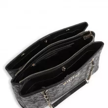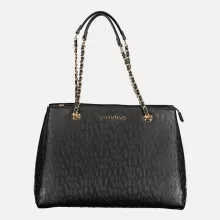 Crafted with exquisite attention to detail, the bag features dual chain shoulder handles for a comfortable fit and versatile styling options. The sleek design is enhanced with contrasting details that add a bold touch to any outfit. Inside, you’ll find two spacious compartments and one central pocket for easy organization, along with two additional inside pockets to keep your essentials neatly in place. The zip and button closure offer both security and convenience, while the iconic Valentino logo adds a refined finishing touch.