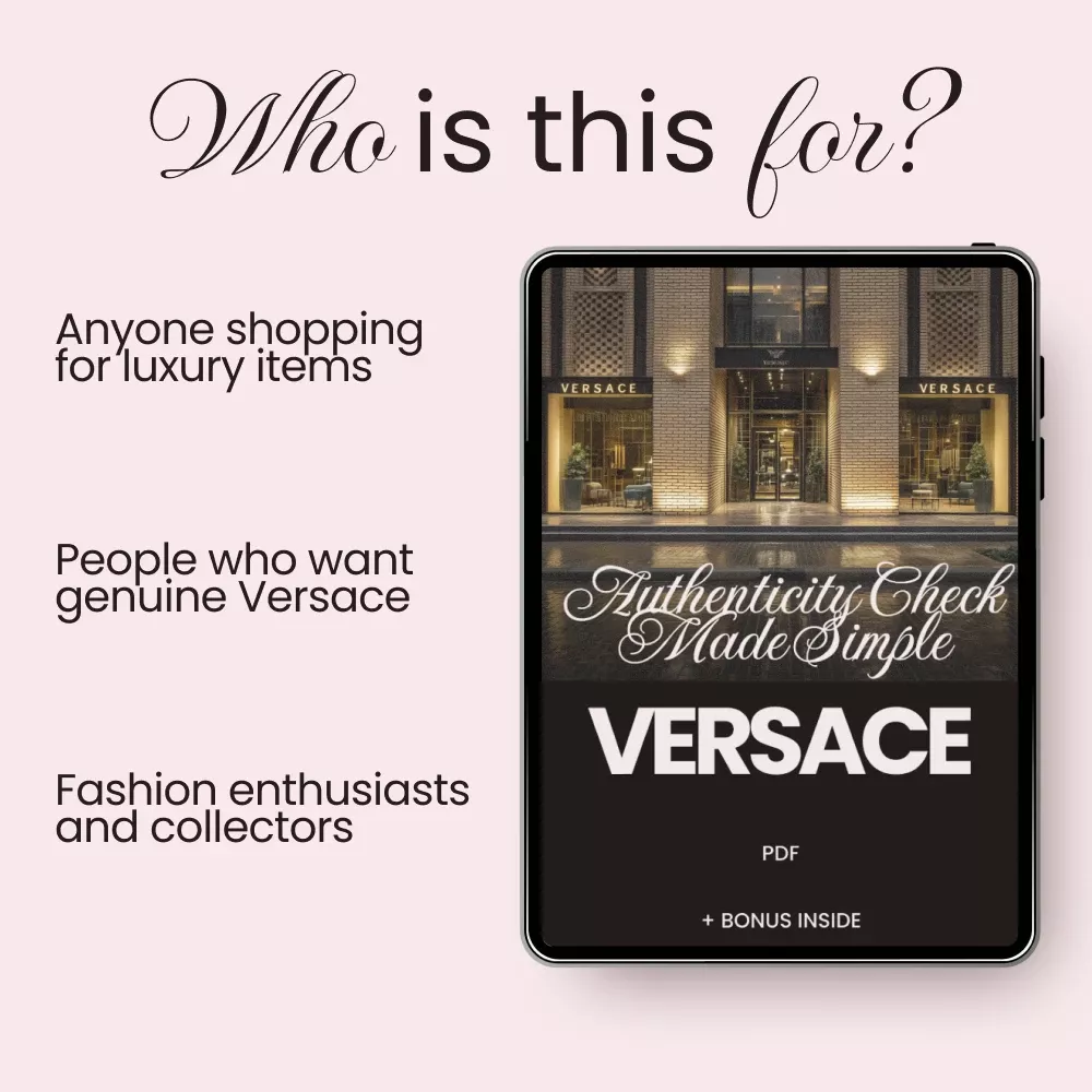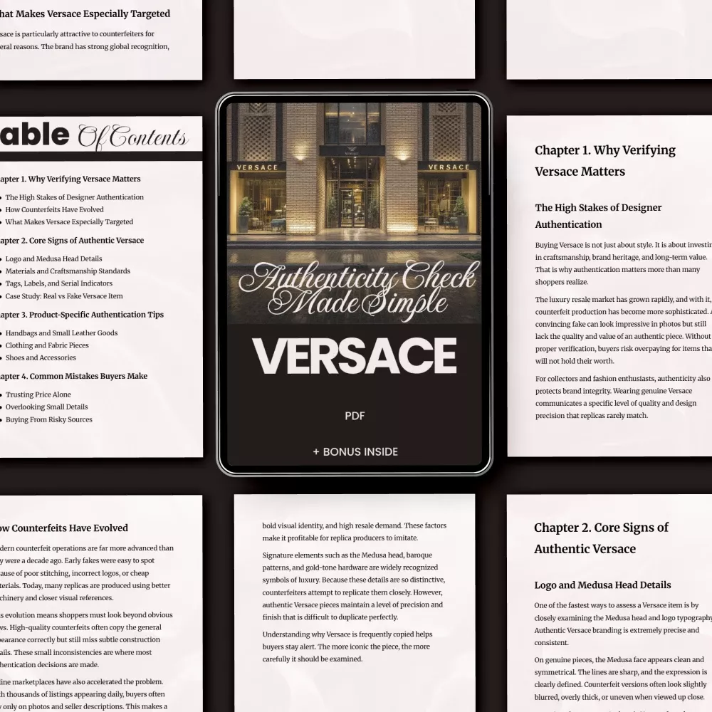 Unlike other generic guides, Versace Authenticity Check Made Simple is specifically tailored to the Versace brand. It goes beyond the basics and dives deep into the subtle details that only experts know. With practical, easy-to-follow tips, this eBook gives you the tools to spot a fake from a mile away. Whether it’s understanding the craftsmanship of a handbag or using AI to verify authenticity, you’ll be well-equipped to shop with confidence.