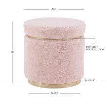 This Storage Ottoman Stool shines in its versatility. Perfect next to your favorite armchair, by a desk, or as a stylish accent to your makeup vanity, it seamlessly integrates into any decor. The natural finish pinewood trim subtly complements the blush sherpa, creating a piece that’s both eye-catching and understated. The soft fabric invites relaxation, making it an ideal footrest, while the sturdy construction offers reliable extra seating.