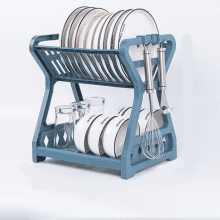 This multifunctional dish storage drain rack is more than just a dish rack; it’s a lifestyle upgrade. Its double-layer design maximizes space efficiency, allowing you to dry more dishes while occupying minimal counter space. The thoughtful design ensures easy drainage, keeping your countertops dry and hygienic. Its sturdy construction withstands daily use, making it a reliable partner in your kitchen. The simplicity of its design not only offers convenience in storage but also adds an elegant touch to your kitchen décor.