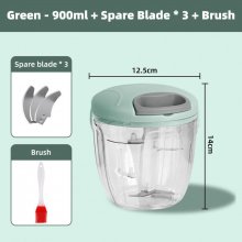 Our chopper stands out due to its unique combination of functionality and ease of use. The additional replacement blades and food-grade brush included in the set extend its life and enhance its utility. The manual operation means no electricity is needed, making it eco-friendly and portable. Its safe and sturdy construction, with a focus on user comfort, makes it a reliable addition to any kitchen.