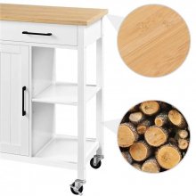 Beyond its basic features, what makes this kitchen island truly special is its adaptability. It fits seamlessly into any kitchen decor and can be repurposed for various uses around your home. The combination of crisp white and bamboo adds a modern yet warm touch, making it an attractive focal point in any room.
