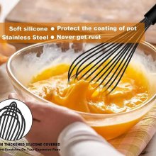 Our Manual Whisk is a cut above the rest, featuring a thickened silicone protective cover that prevents your precious pans and pots from scratches. The ergonomic plastic handle is designed to fit snugly in your hand, providing a comfortable and secure grip even when your hands are wet. The high-performance design ensures durability and safety, making it a trustworthy tool for all your mixing needs.
