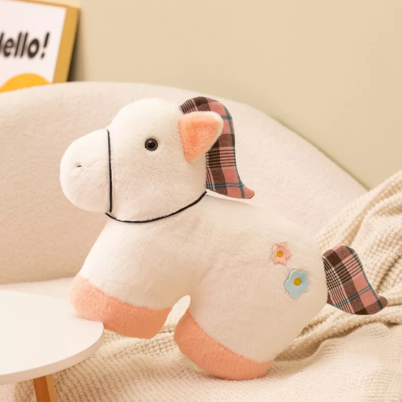 Warm Checkered Horse Plush Pillow – Cozy Kawaii Pony Cushion
