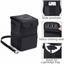 Crafted from quality waterproof oxford cloth, our auto trash can is an absolute handy accessory. Designed with two side pockets, a garbage bag hook, and a velcro closing seal, it’s sturdy and performance-driven to hold up to 1.23 gallons of trash. Plus, a push-seal trash lid helps block any odors from wafting out into the vehicle interior.