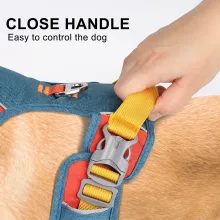 This dog harness is more than just a walking accessory. Its innovative no-pull design distributes pressure evenly, preventing discomfort and encouraging proper walking behavior. The reflective stitching is a lifesaver during evening walks, making your pet visible to passing vehicles. Crafted from breathable nylon, it’s lightweight yet tough enough for even the most energetic dogs.