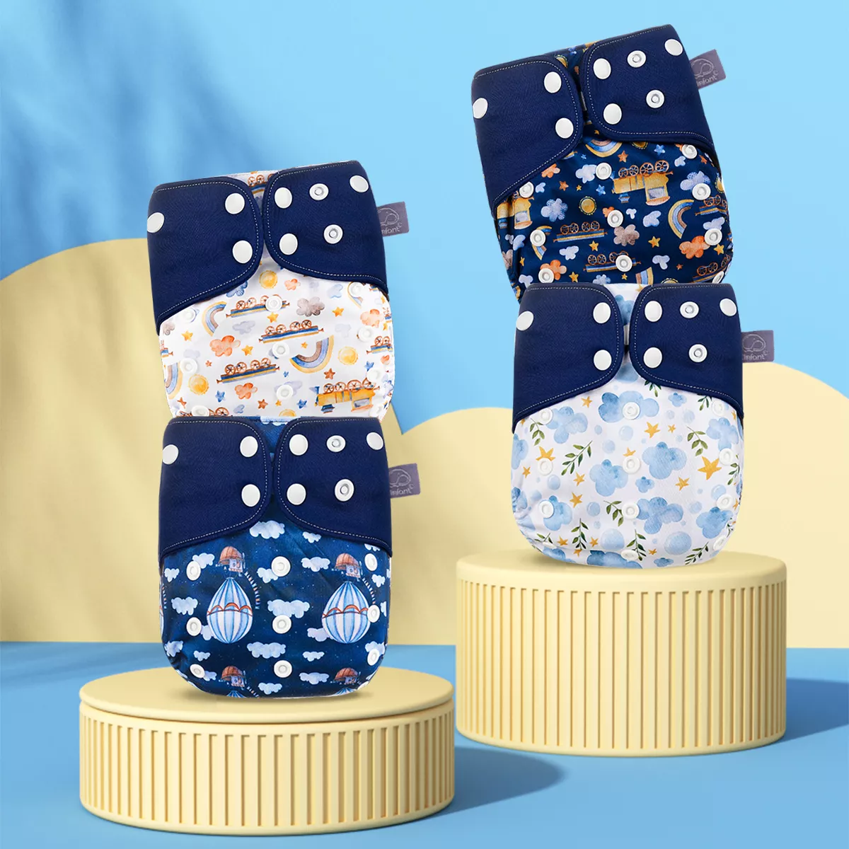 Waterproof Reusable Baby Cloth Diapers – 4 Pack Pocket Nappy Set (7-33 lbs)