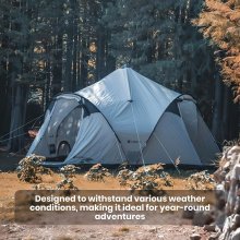 Finally, a tent that lives up to its promises! The spacious interior is a dream, easily accommodating our group and gear. The weather-resistant features were put to the test on our last trip, and we stayed perfectly dry despite the rain. It's sturdy, reliable, and by far the best tent I've owned. Love this tent! The three-door design is genius - no more crawling over people to get out. It's also super spacious, fitting my family of five with room to spare. The waterproofing is top-notch; not a single leak during a rainy night. It's like a mini-home for the outdoors.