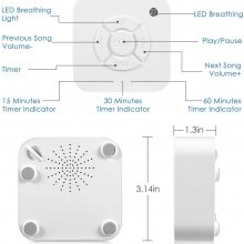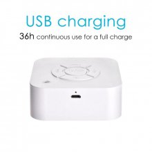 Unlike other bulky sound machines out on the market, ours cuts down on size without compromising on quality and function. Our White Noise USB Machine measures just 3.14 x 3.14 inches with 1.3 inches of thickness, making it fit for the most crowded of desks or right on your bed nightstand.