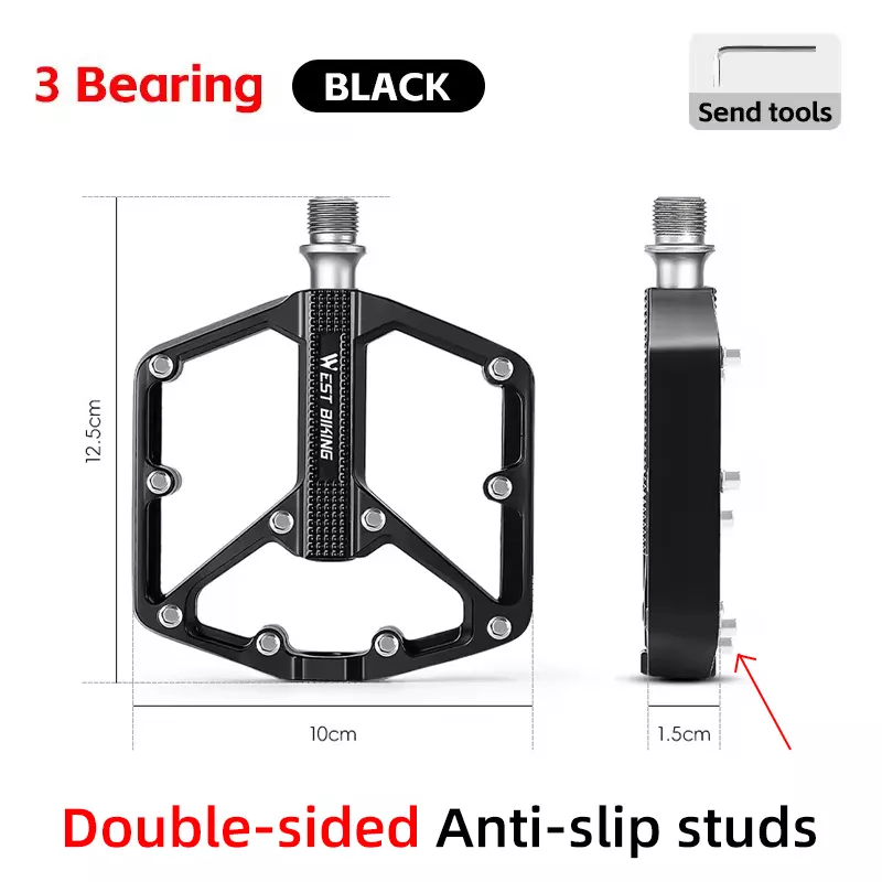 Take your rides to the next level with these widened 3-bearing bicycle pedals. Designed for strength, comfort, and precision, they provide secure footing, smooth pedaling, and reliable durability on any trail or road. Whether you are hitting rugged mountain paths or cruising through the city, these pedals deliver consistent performance and ultimate control for every ride.