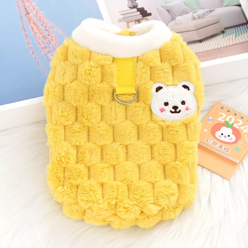 Give your furry friend the warmth, comfort, and style they deserve with this ultra-soft Winter Plush Pet Jacket. Made from cozy polyester fiber, this fashionable vest is perfect for dogs and cats who need extra warmth during chilly days. Its charming bear print design and hoodie style make it both cute and practical, turning everyday walks into a stylish winter adventure.