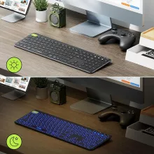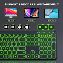 Designed with Apple users in mind, this sleek keyboard stands out with its slim and ergonomic design. The seven backlight colors create a visually appealing workspace, while its compatibility across four operating systems makes it incredibly versatile. Its rechargeable battery and multi-device pairing capability add convenience, ensuring that you stay connected and efficient wherever you go.