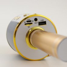 Feature packed, my wife loves this microphone! She uses a singing app and wanted her own microphone, instead of using her phones built-in microphone. It sounds great, speaker quality is good, and has nice LED's that flash with the volume of her voice. Charges through an older micro-usb cable, which is a bit outdated, but for the price, I can't complain. plays music easily with the included Last, Next, Pause/Play. Power button was hard to find, it's actually at the top and blends in with the dazzling silver! All-in-all, a good quality microphone!