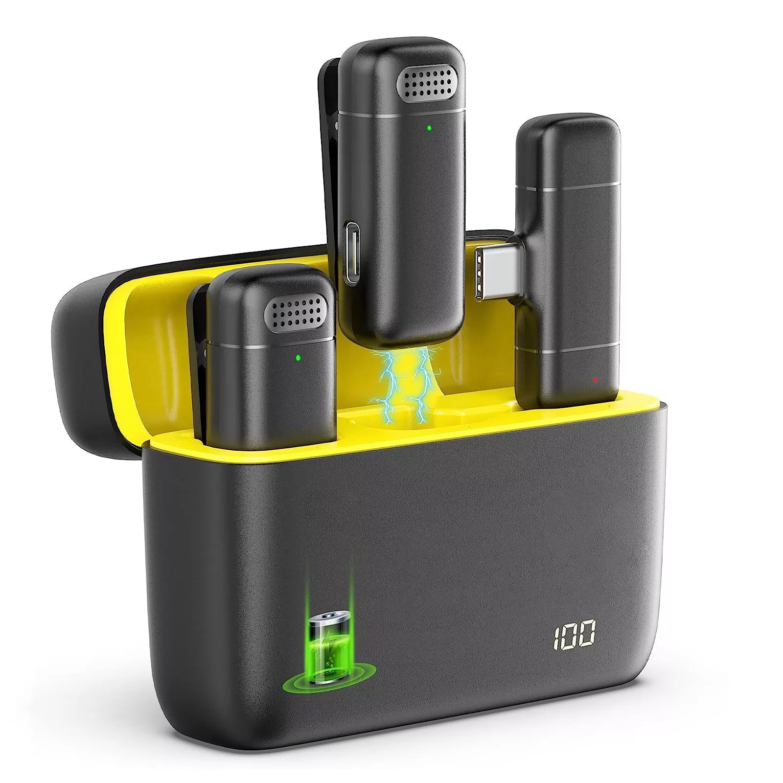 Wireless Lavalier Microphone with Charging Case for iPhone, Android, and Gaming