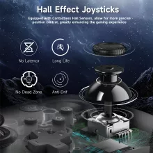 - Hall Effect Joysticks and Triggers: Equipped with dual Hall sensors for drift-free precision, ensuring consistent and accurate controls.