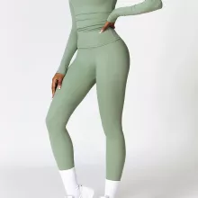 Made from a premium blend of 78% nylon and 22% spandex, the fabric is soft, breathable, and stretchy, ensuring maximum flexibility and comfort. The long sleeve crop top provides a supportive fit while keeping you cool and dry with its moisture-wicking properties. The high-waisted leggings are designed to shape and flatter your body, giving you a sleek and confident look no matter your activity. The anti-wrinkle and anti-pilling features ensure that your set stays looking fresh, no matter how many times you wear it.
