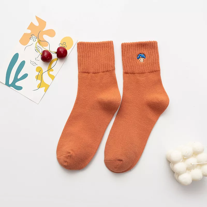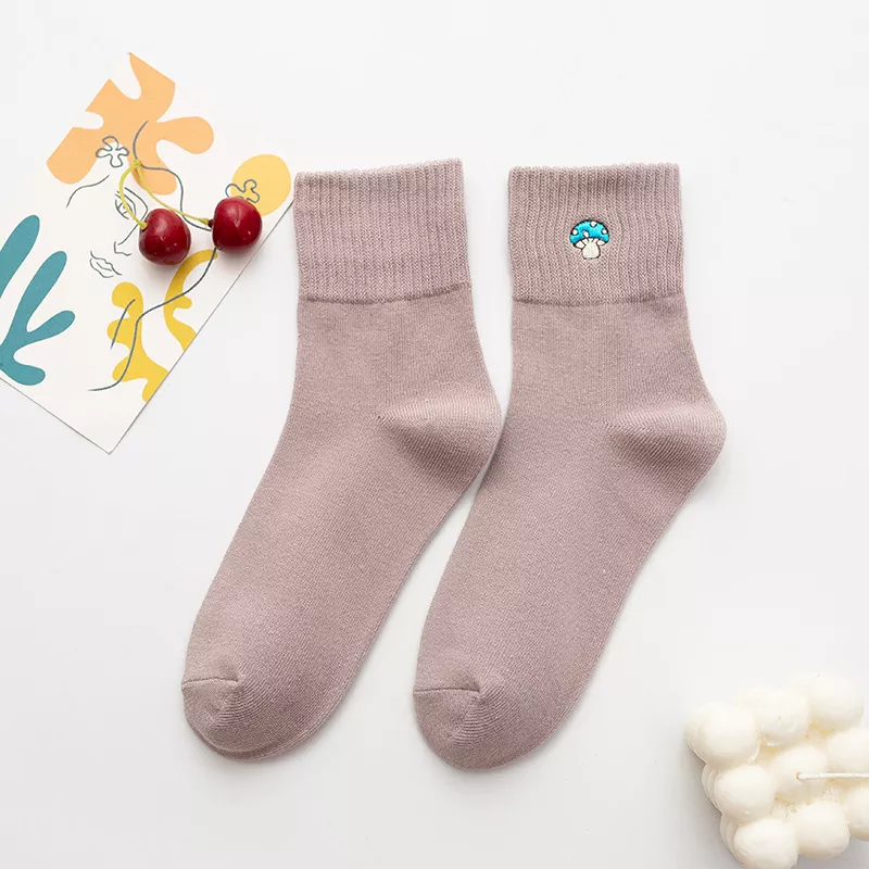 Women’s Cute Mushroom Embroidered Harajuku Cotton Socks