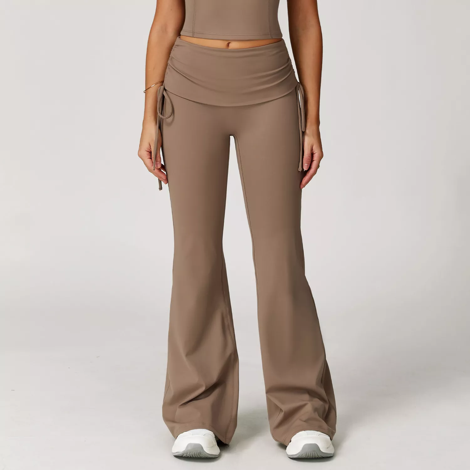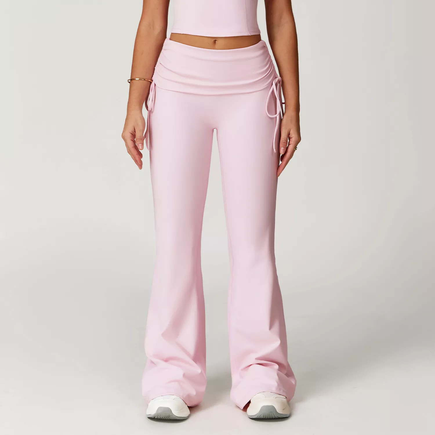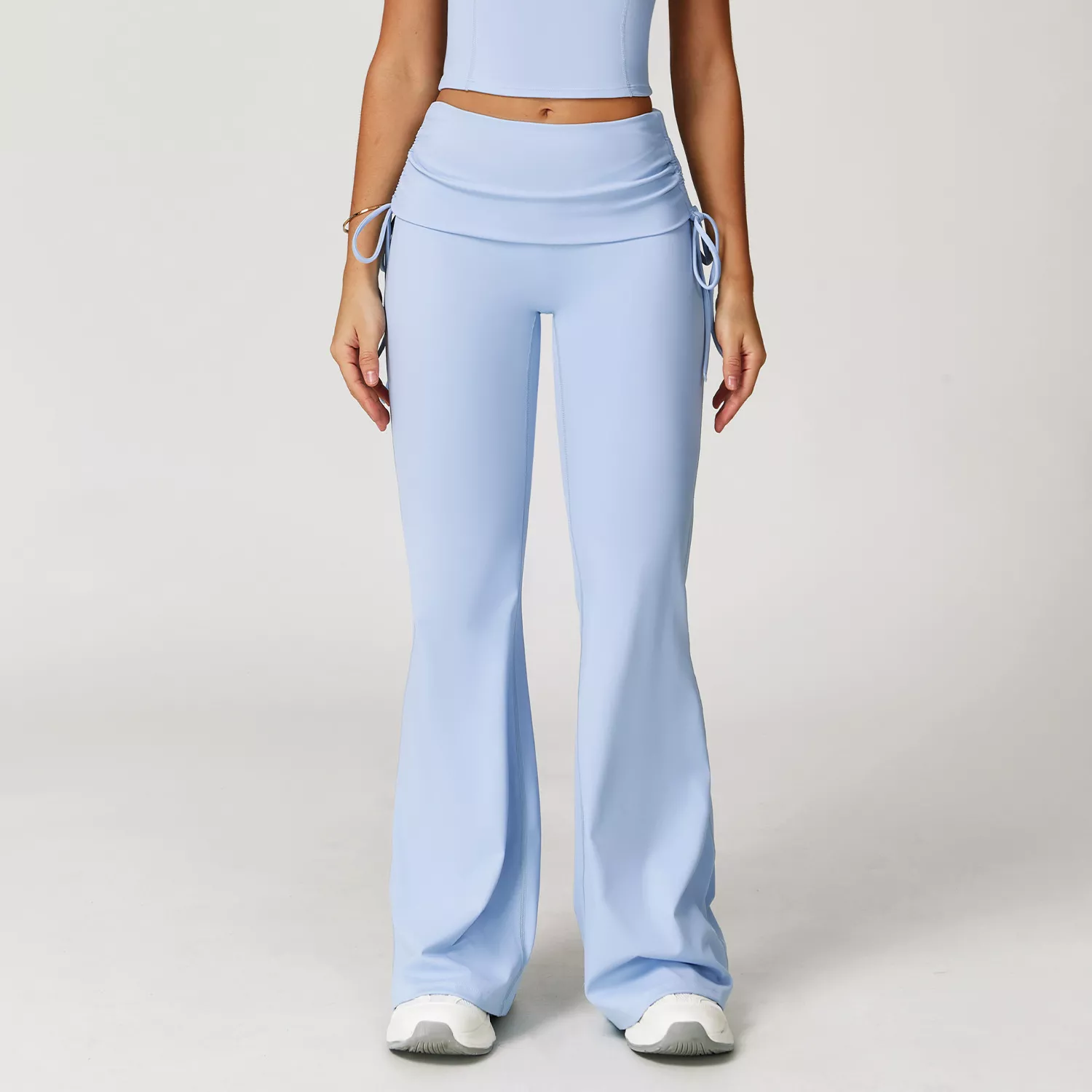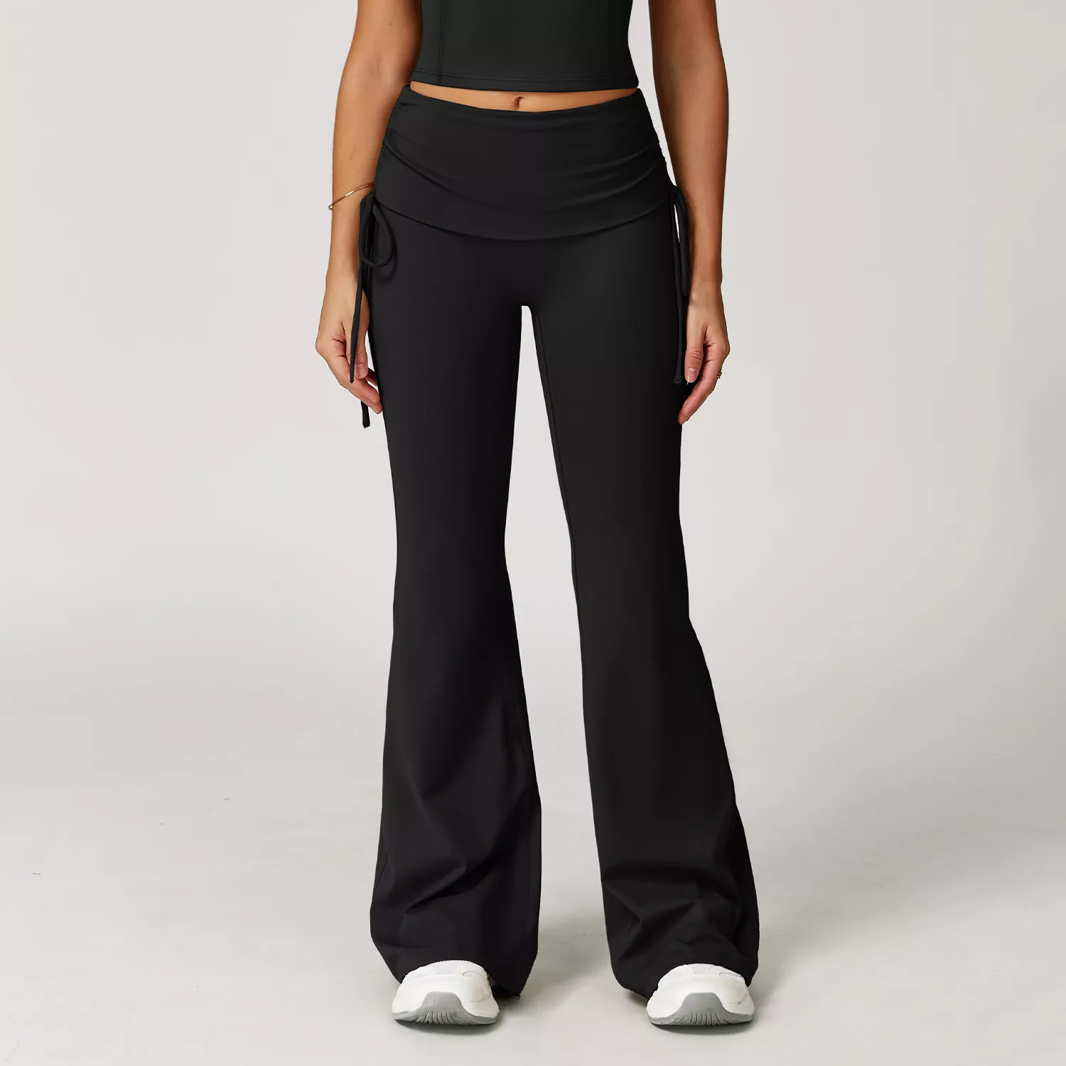 Step into comfort and style with these high waist flared yoga pants designed for the modern active woman. Crafted from premium nylon and spandex, these pants offer a smooth, second-skin feel that moves with your body. The soft Jinammonia nude fabric provides a barely-there sensation, making every workout or lounge moment more enjoyable. The folding waist with adjustable tie rope ensures a personalized fit, while the flattering flared cut elongates your legs and adds a touch of retro chic to your look.