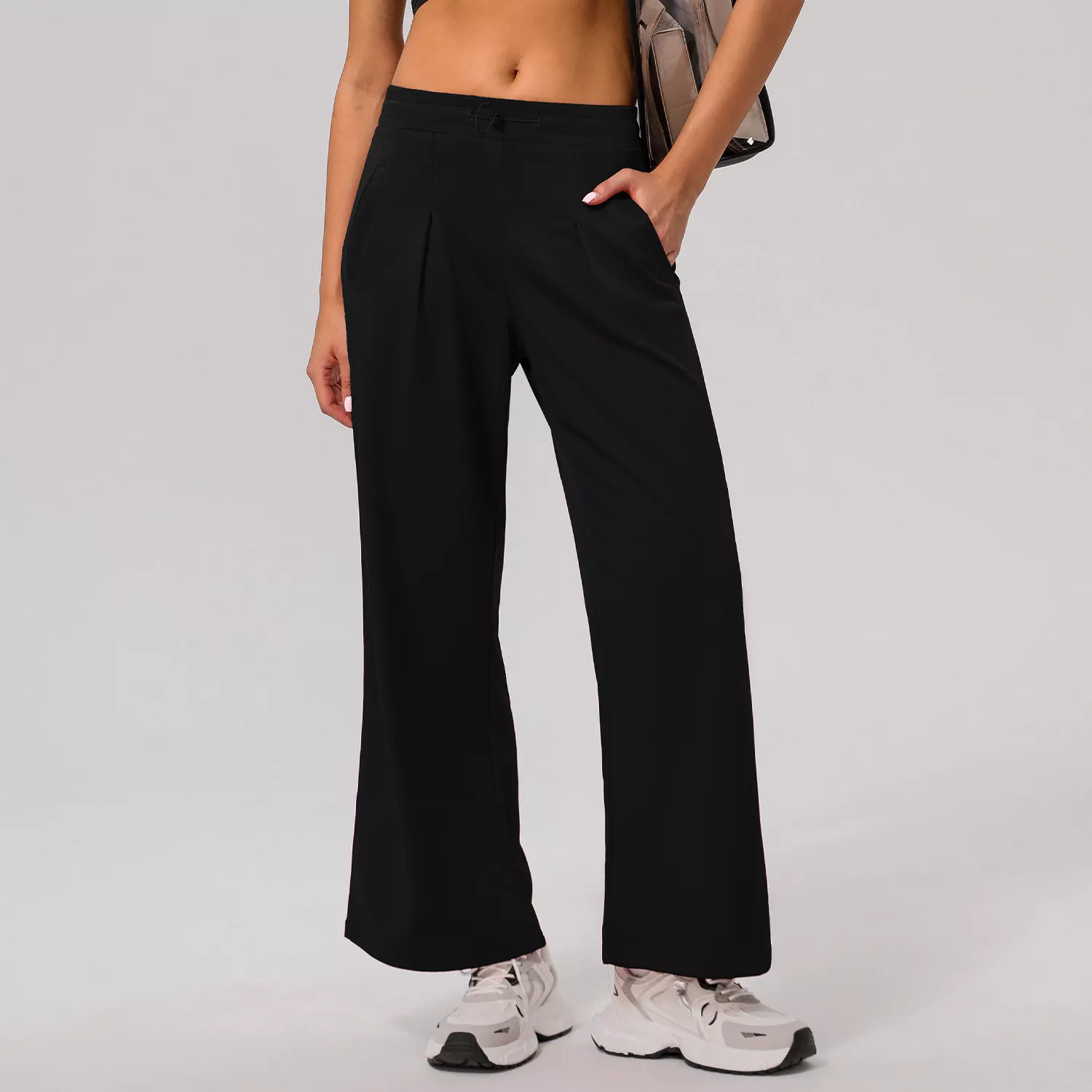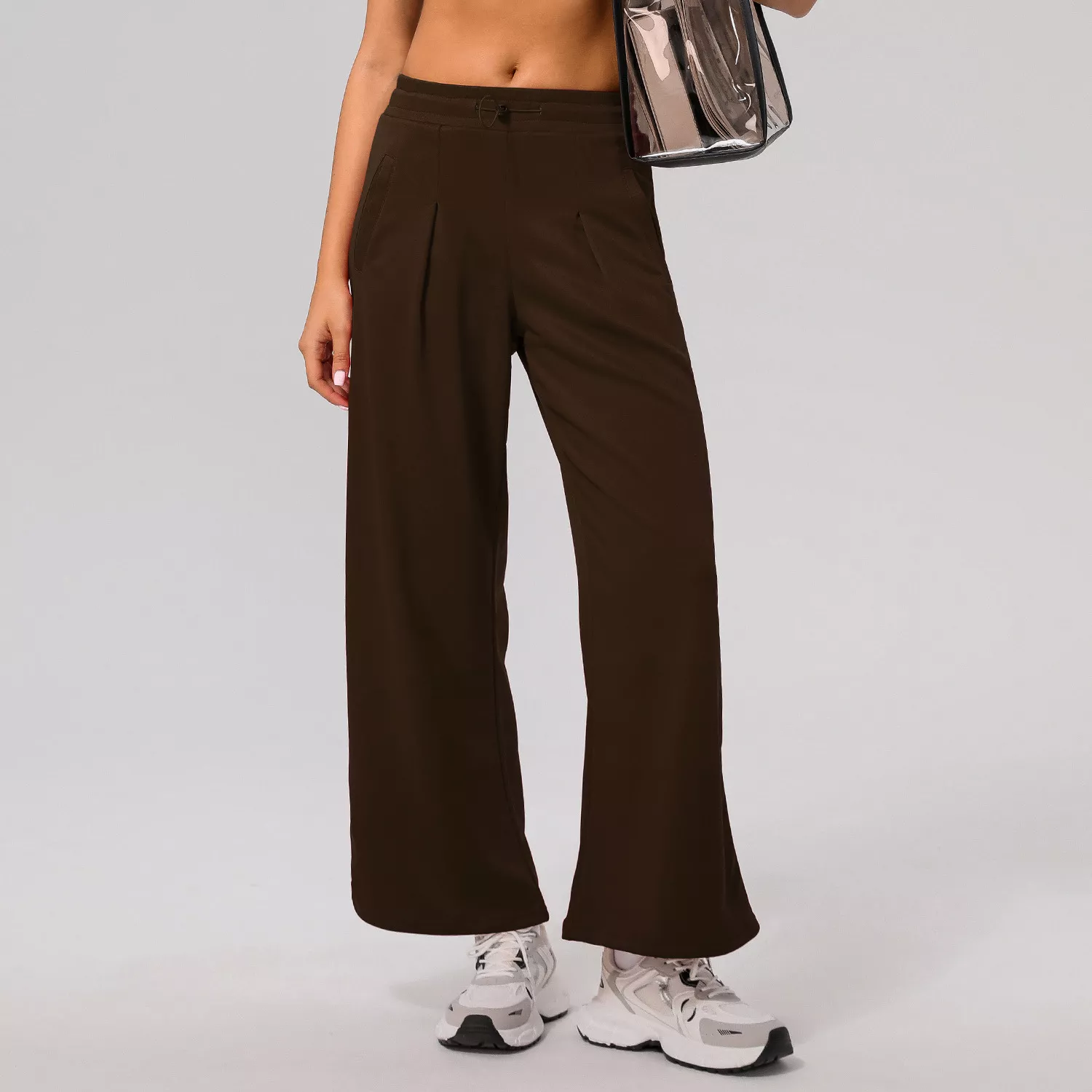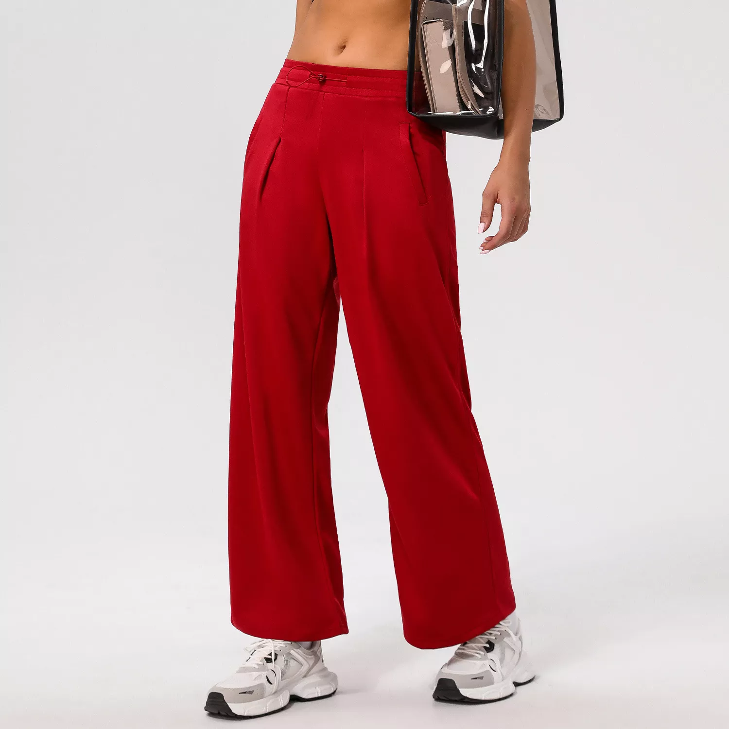 These pants aren’t just sportswear—they’re a wardrobe essential. The breathable fabric ensures comfort in warm weather, while the full-length design provides coverage in cooler seasons. The drawstring closure lets you adjust the fit to your liking, and the classic solid colors—red, coffee, and black—make them easy to pair with any top. The wide leg style offers a relaxed yet polished look, making these trousers just as perfect for a yoga class as they are for a coffee date. You’ll love how they blend sporty practicality with everyday elegance.