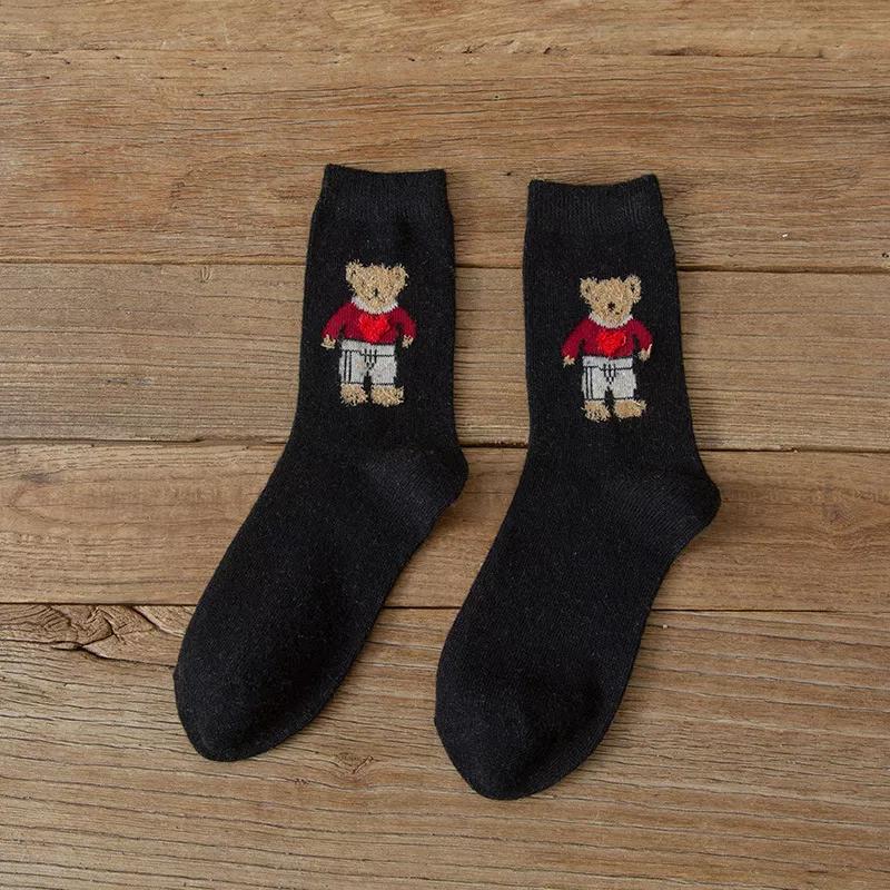 These socks are more than just cute—their thoughtful design makes them perfect for autumn and winter wear. The thickened, cozy texture keeps your feet warm, while the soft, breathable cotton ensures you stay comfortable all day. With a middle-tube height and one-size fit suitable for US women’s shoe sizes approximately 5 to 8.5 (EUR 35–40), they hug your feet just right without feeling tight. Each pair features a sweet Harajuku-inspired bear design in charming colors like black, red, yellow, khaki, navy, and fun mixed options.