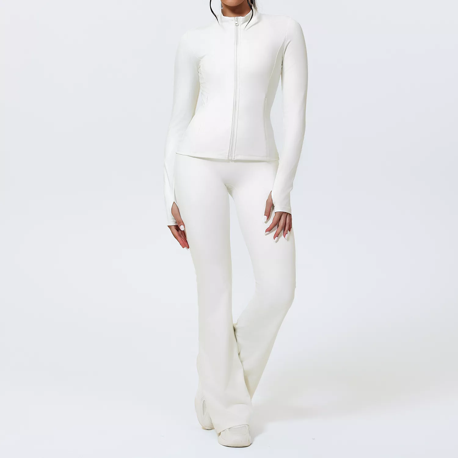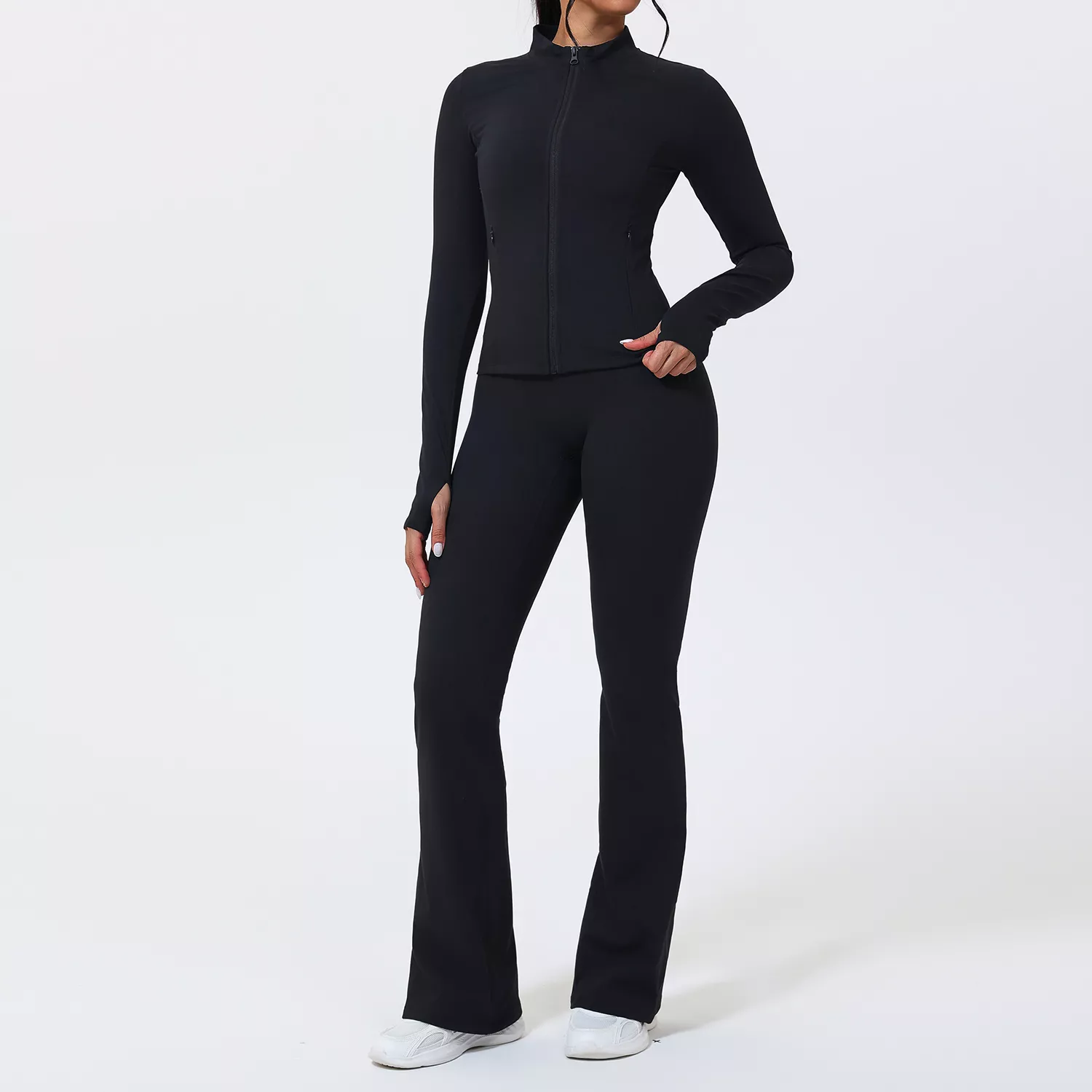 Step confidently into your training routine with this sleek, long-sleeve sports jacket and matching high-stretch fitness bottoms. Designed for women who want comfort, support, and effortless style, this two-piece active set delivers everything you need for workouts, outdoor activities, and everyday movement. Crafted from a soft, flexible blend of polyester and spandex, it hugs your body with a smooth, second-skin feel while allowing complete freedom of motion.