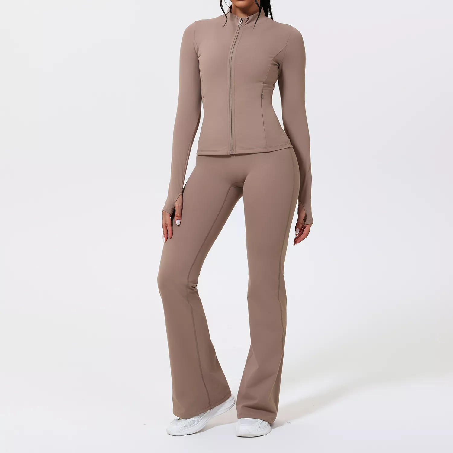 Whether you’re hitting the gym, flowing through yoga poses, or heading outdoors, this long-sleeve sports jacket and fitness set delivers comfort and performance you can rely on. It’s versatile enough for intense workouts yet stylish enough for casual everyday wear. Thanks to the fabric’s natural elasticity, it adapts comfortably to your body, while the breathable knit keeps you cool and confident during any activity. The set is also great for women who want an outfit that transitions effortlessly from training to errands without losing style.