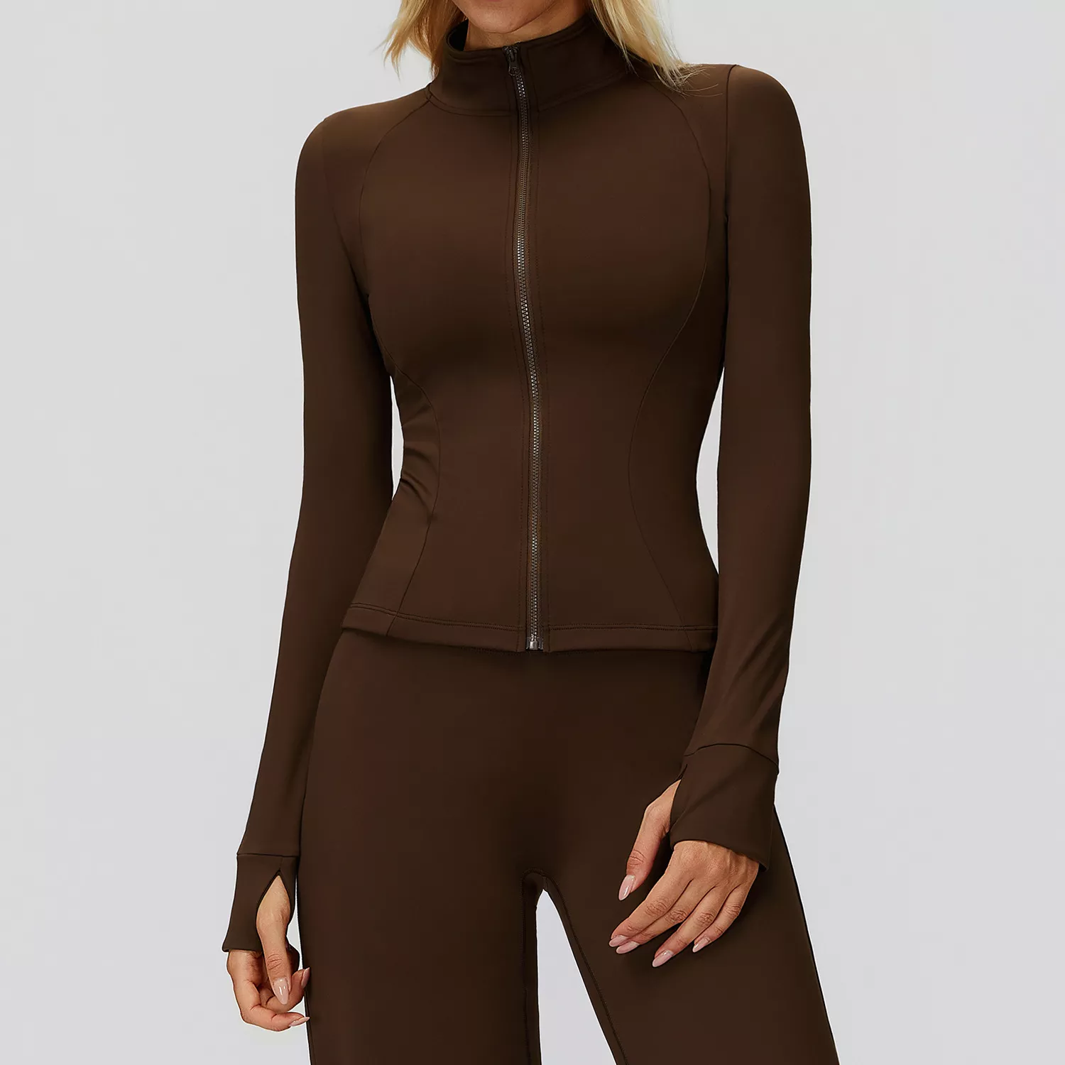 Meet your new go-to layer for every training session. This long-sleeve zip-up yoga and fitness jacket is designed to help you move with confidence, stay comfortable, and look amazing from warm-up to cool-down. With a smooth, flexible feel and a sleek silhouette, it delivers everything you need for running, yoga, cycling, gym workouts, and outdoor adventures.