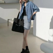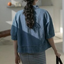 What sets this denim shirt apart is its unique blend of classic and trendy elements. The vintage feel with a modern cropped cut aligns with Korean fashion trends, making it a sought-after piece for those looking to inject some current yet timeless style into their wardrobe. Popular for its design, it’s a shirt that doesn’t just follow trends – it sets them.