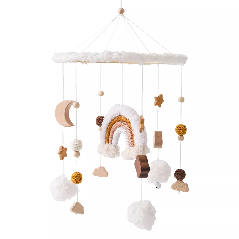 Bring joy, beauty, and gentle learning to your little one’s early days—order this delightful wooden baby mobile today and watch them discover a world of color and sound.