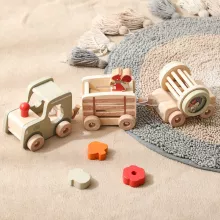 Discover the joy of playtime with this beautifully handcrafted wooden Montessori train set. Designed to captivate young minds, this versatile toy combines education and fun, making it a perfect addition to any child’s playroom. With its durable wooden construction and hand-decorated details, this train set brings timeless charm and endless imaginative possibilities.
